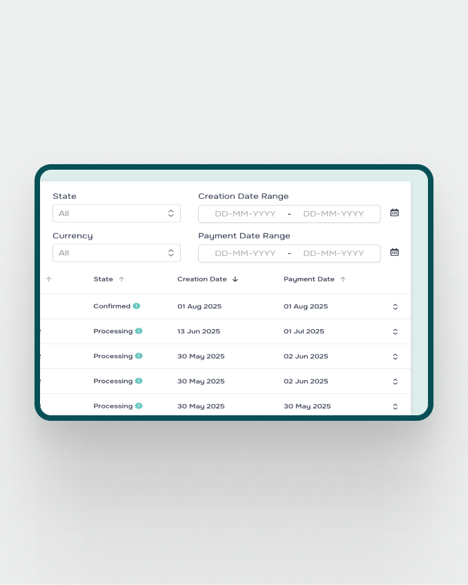 Get visibility on the progress of your transactions in real-time, together with a full transaction history, and real-time MTM updates. Integrate your Bank Account or accounting package seamlessly.